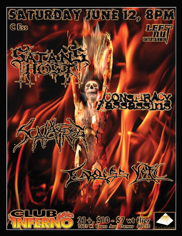 Satan's Host will be performing June 12, 2010 at Club Inferno @ PT's with Conspiracy Assassions, Scalafrea, and Endless Yeti. 21+, $10 @ the door or $7 with a flyer.
