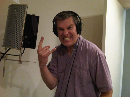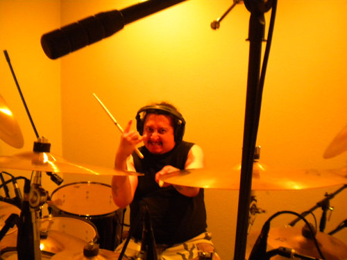 "Yesterday Harry finished up 3 days of laying vocals for the album, stellar performances by far, today we go in and do Gang vocals, and that will complete tracking for the album, then Dave will take the reins and do his magick. We'll have a few weeks off before Mix down, so I'm gonna break my kit down, do some maintenance on it, and get prepped up to start up rehearsals again. " -Evil Hobbit